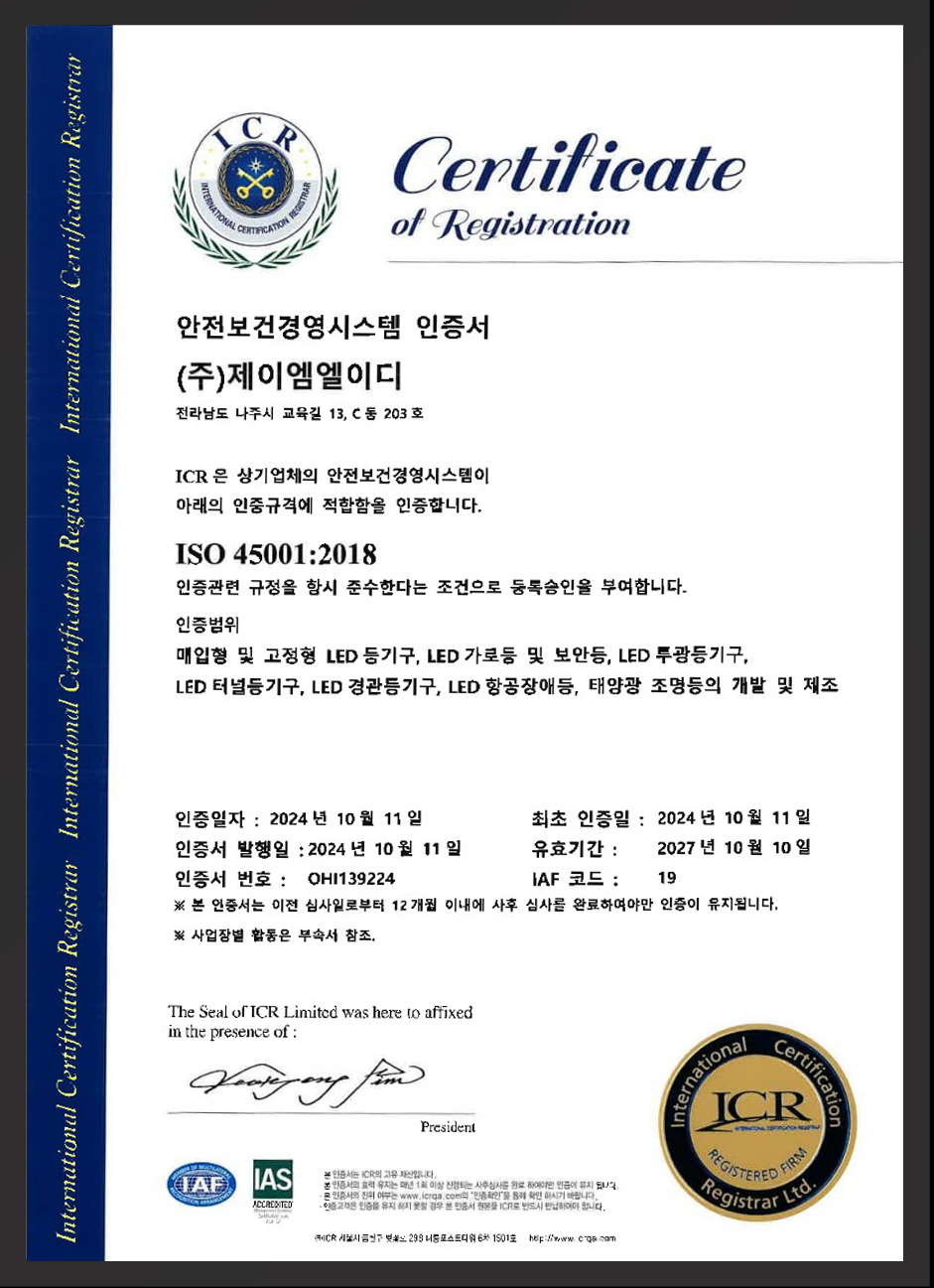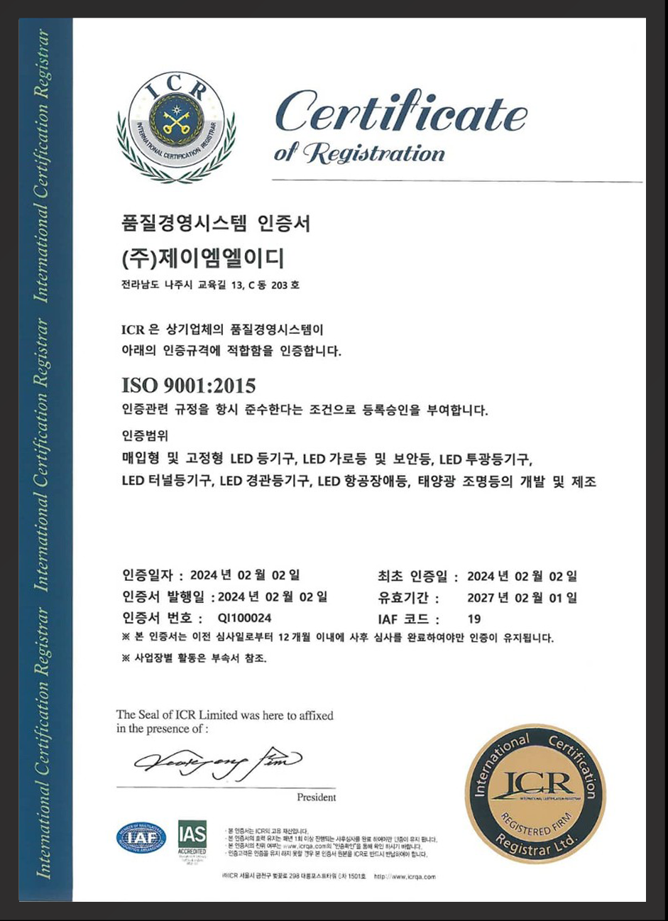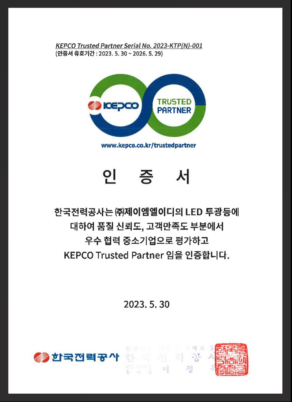 Çѱ¹µµ·Î°ø»ç Ç¥ÁØ LED Á¶¸íµî±â±¸ ÀÎÁõ¼_°¡·Îµî