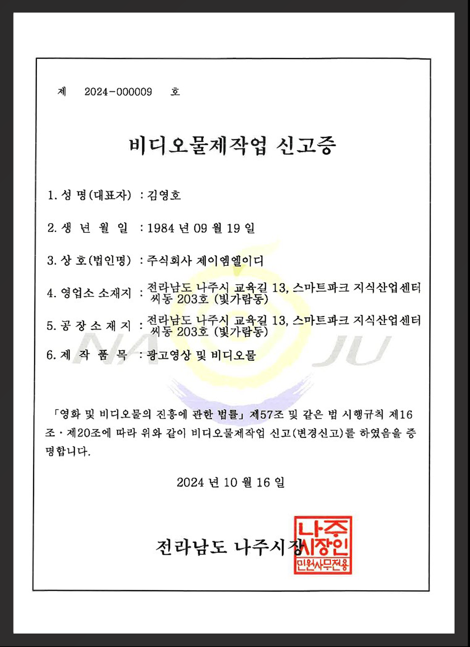 ºñµð¿À¹°Á¦ÀÛ¾÷ ½Å°íÁõ