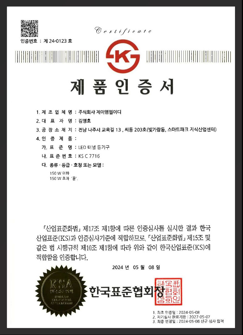KS Á¦Ç°ÀÎÁõ¼_LED °¡·Îµî ¹× º¸¾Èµî ±â±¸