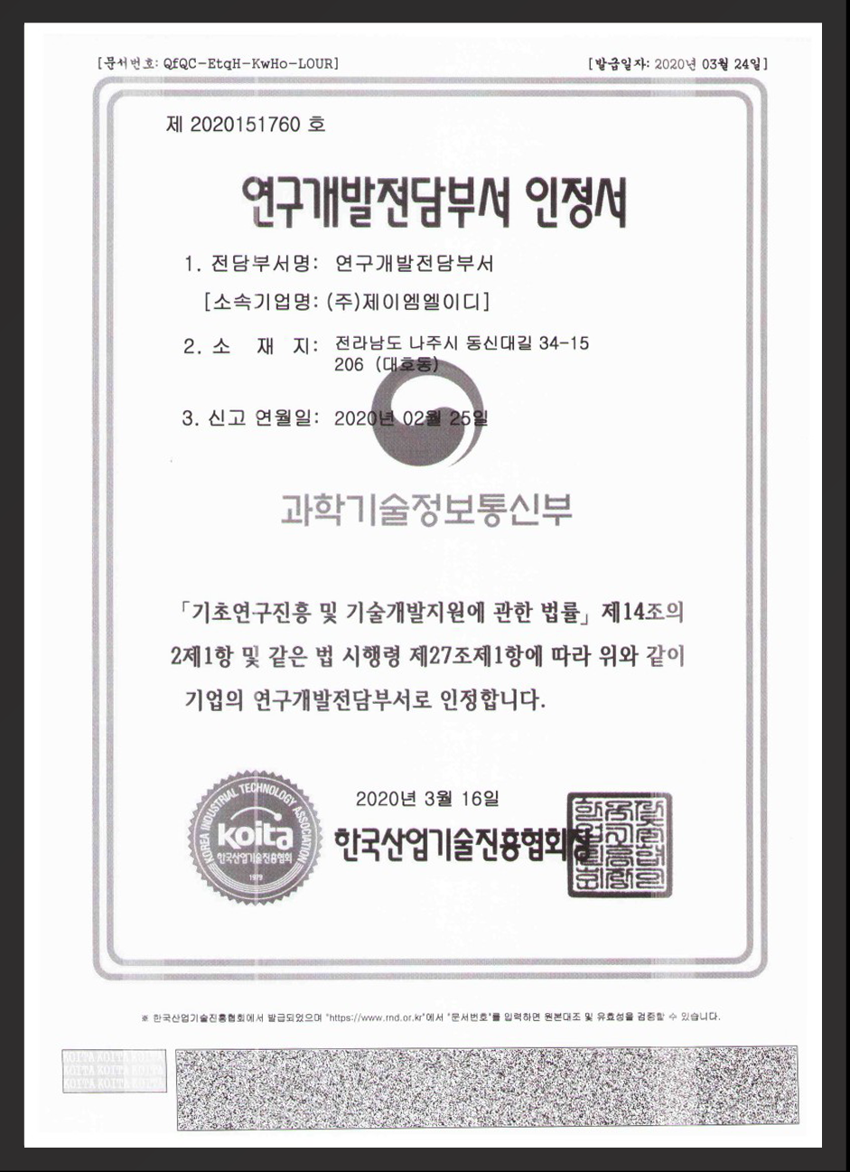Çѱ¹»ê¾÷±â¼úÁøÈïÇùȸ ¿¬±¸°³¹ßÀü´ãºÎ¼ ÀÎÁ¤¼