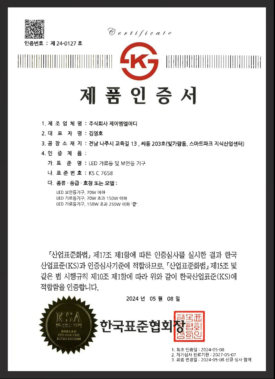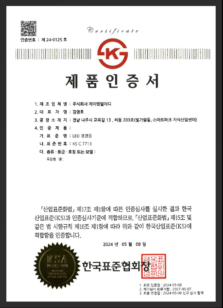 KS Á¦Ç°ÀÎÁõ¼_LED °¡·Îµî ¹× º¸¾Èµî ±â±¸