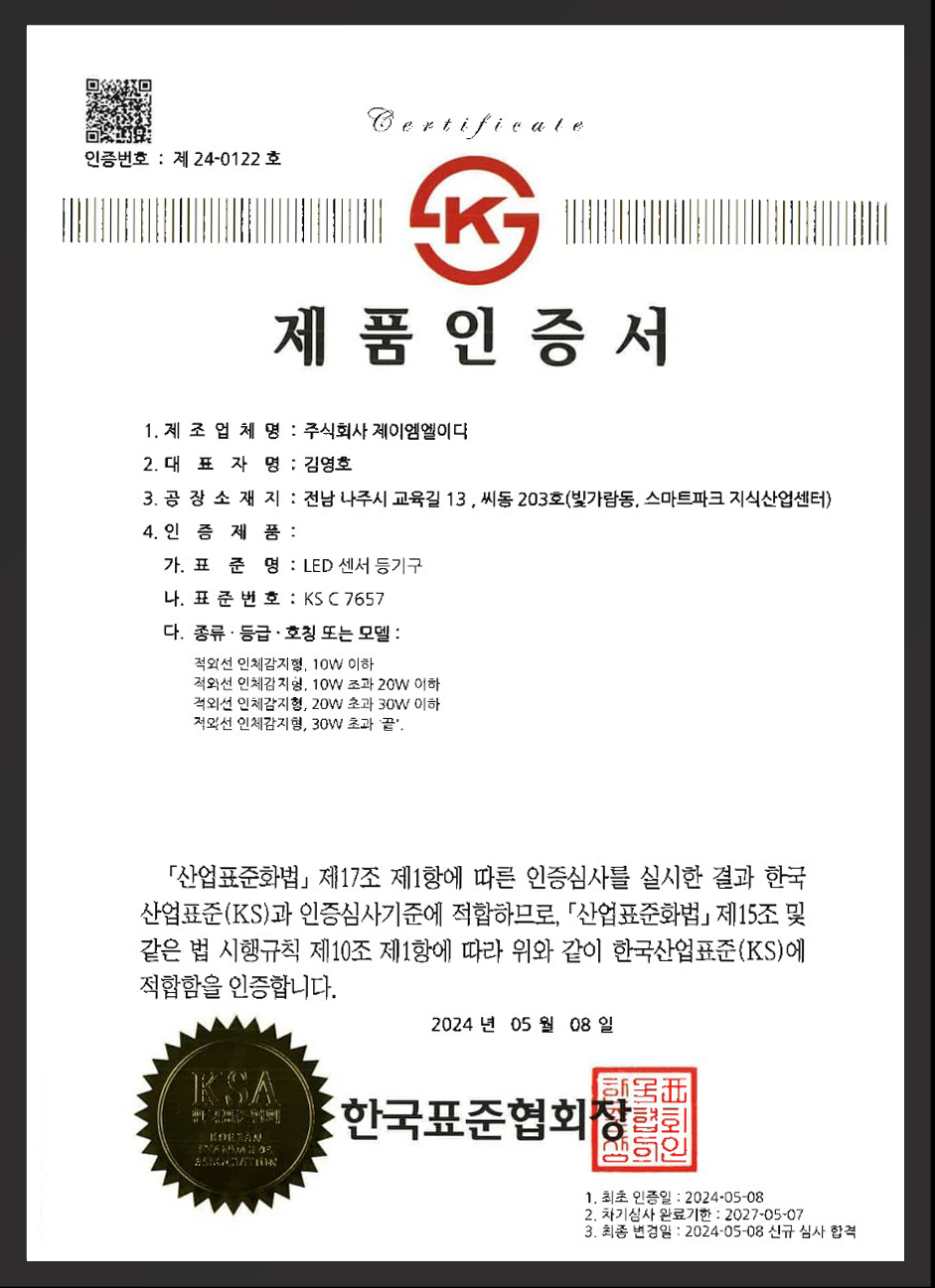 KS Á¦Ç°ÀÎÁõ¼_LED ¼¾¼ µî±â±¸