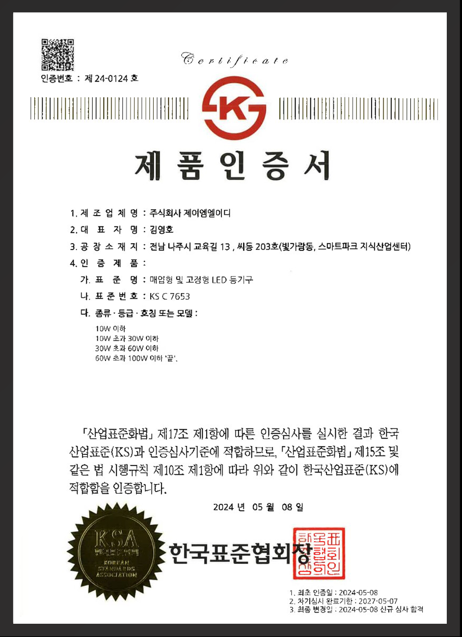 KS Á¦Ç°ÀÎÁõ¼_LED °æ°üµî